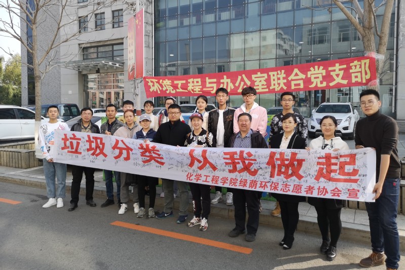 环境工程与办公室联合党支部同绿荫环保志愿者协会联合开展“垃圾分类从我做起,全民参与利国利民”主题宣传活动
