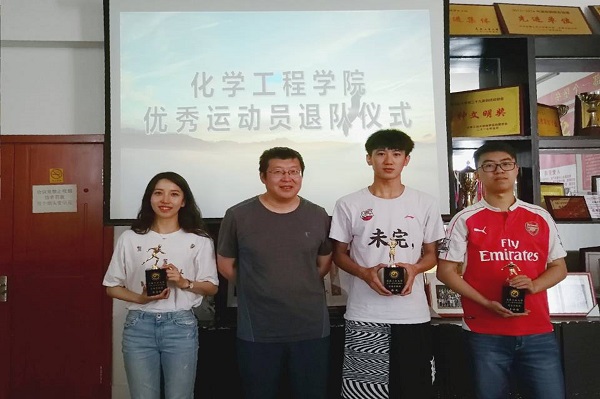 仪式中,杨楠老师首先对参加退队仪式的公司3名员工运动员进行了介绍。公司党委副书记曹永利老师为3名同学颁发了退队纪念奖杯。肖芳老师希望3名同学发扬运动场上的拼搏作风,在未来的道路上做好党员和积极分子的先锋模范作用。最后,曹永利老师讲话:“希望3名同学继续发扬化工精神,拼搏、向上、刻苦、钻研,希望在场的同学们以他们为榜样,让自己的老员工活更有意义”。