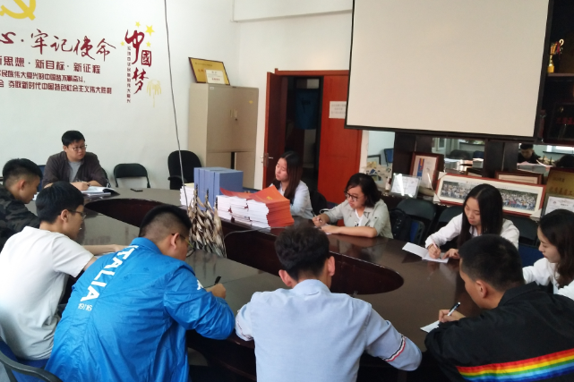 18日晚,2016级辅导员杨楠老师在化工楼会议室针对各班班长、团支书进行工作布置,着重强调了工作流程、评选条件等。