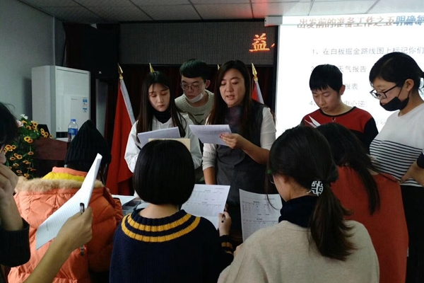 培训课程刚开始,各志愿者协会作了简单的介绍,主讲人宣讲了团队面对首先要建立目标,迎难而上,最后取得团队双赢。随后,主讲人组织了以“沙漠掘金”课程体验的方式培养我们团队在决策、合作、沟通、压力及冲突中能正确的处理问题。