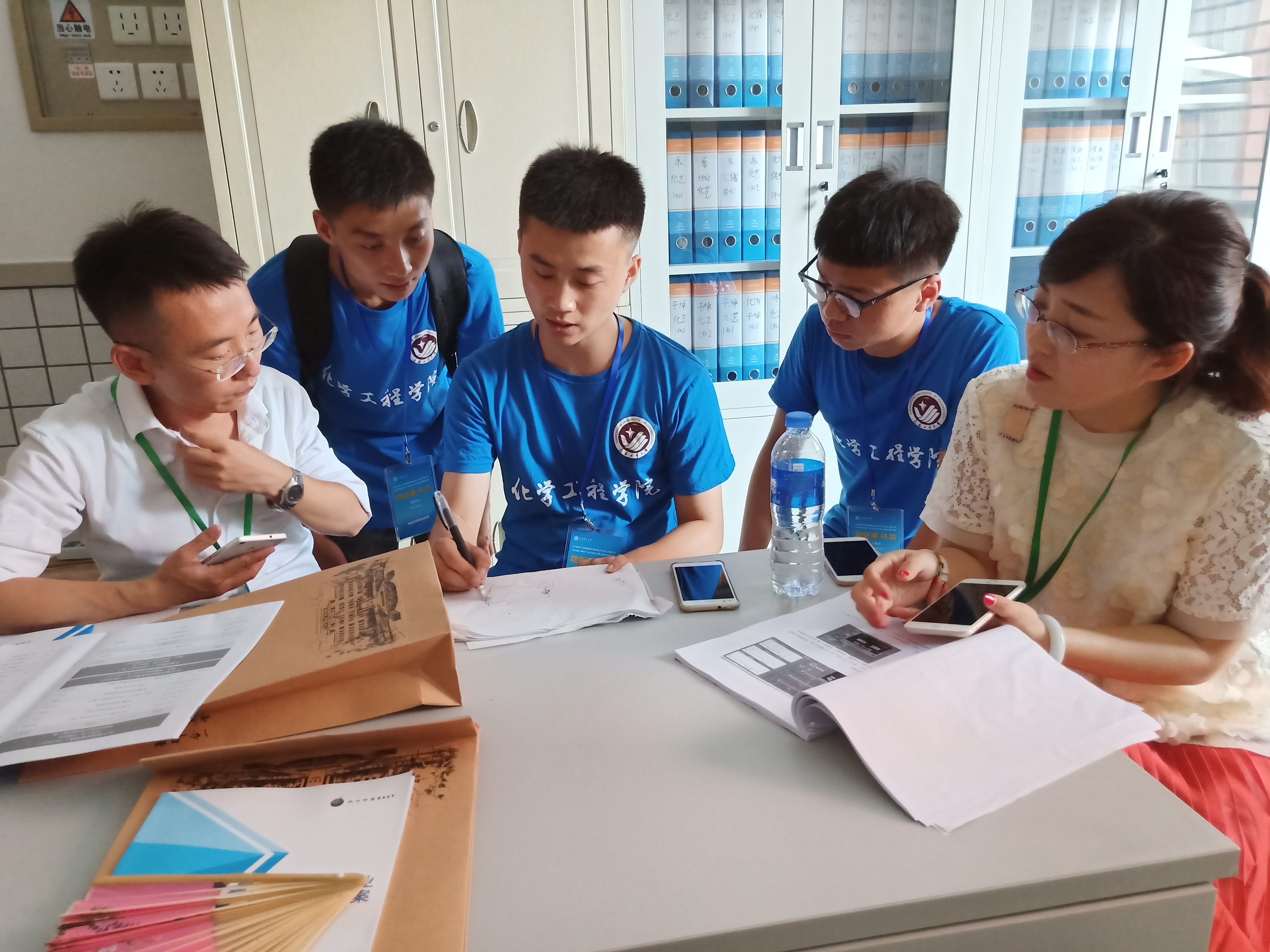 李贞玉副经理、侯旭老师和参赛学子在为赛前做准备